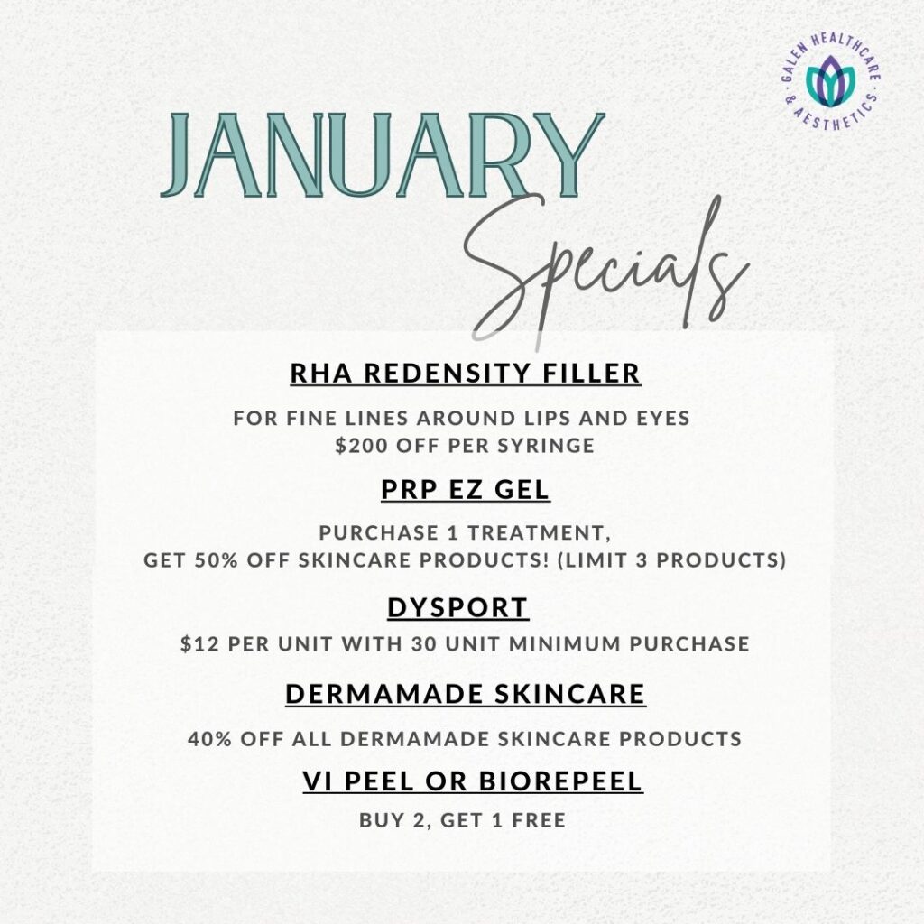 Redeeming our specials at Galen Healthcare & Aesthetics is simple and straightforward. Customers can either call us to inquire about specific promotions or visit our clinic to learn more about the available offers. It’s important to note that our specials are not valid for online store purchases.